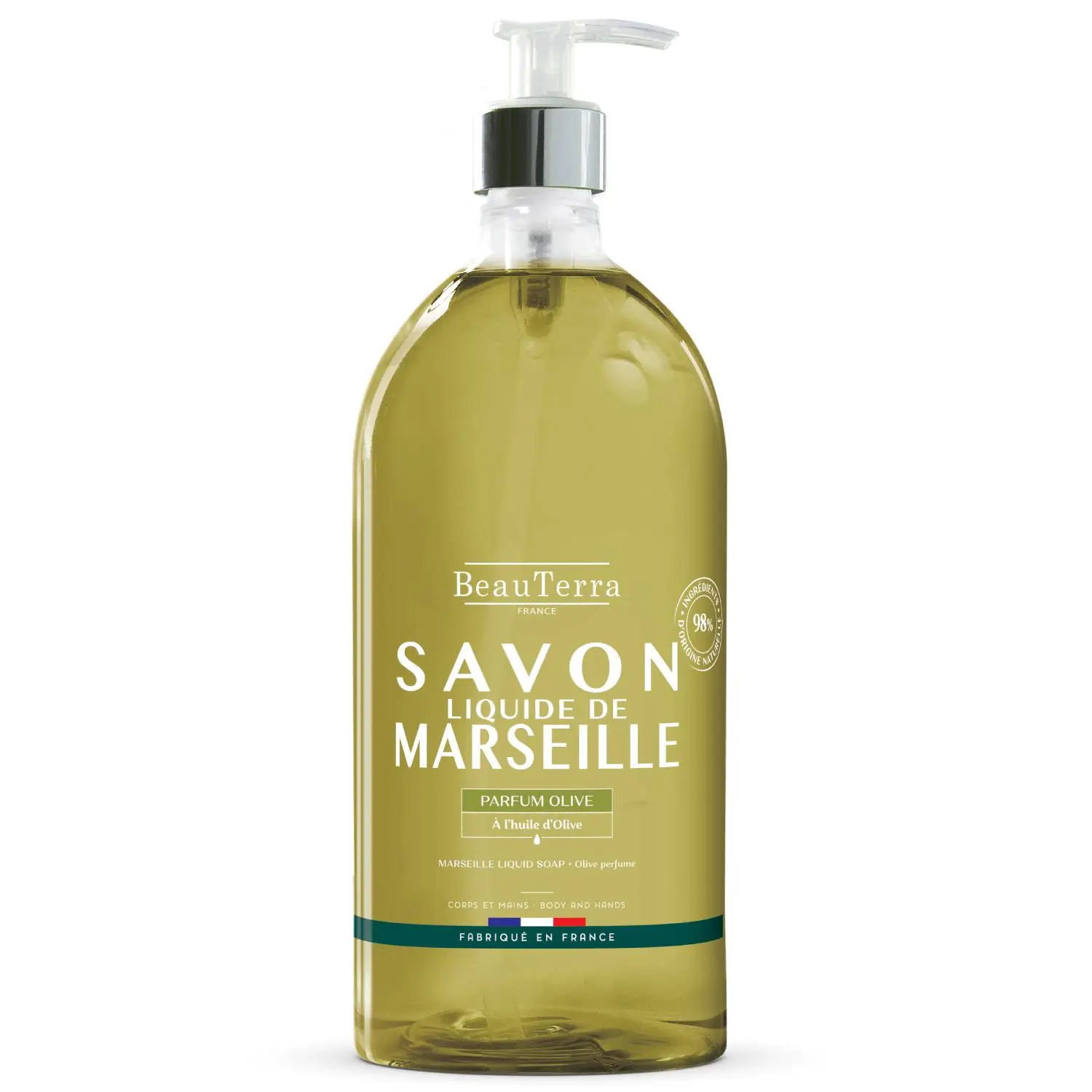 Жидкое марсельское мыло BeauTerra содержит 98% ингредиентов природного происхождения.