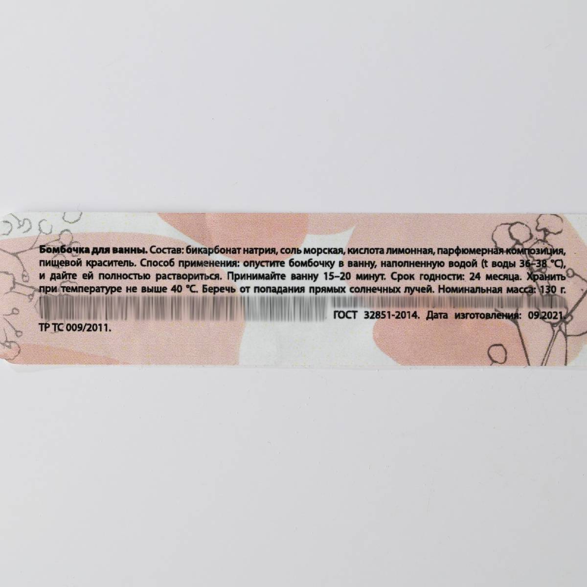 Состав: бикарбонат натрия, соль морская, кислота лимонная, парфюмерная композиция, пищевой краситель.