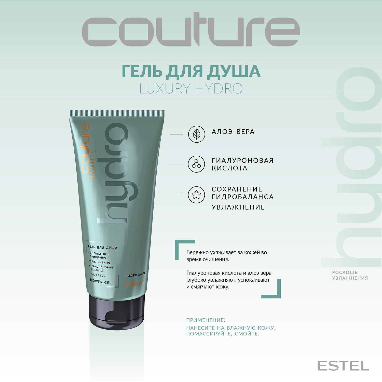Формула с гиалуроновой кислотой и алоэ вера в составе продукта бережно ухаживает за кожей тела: