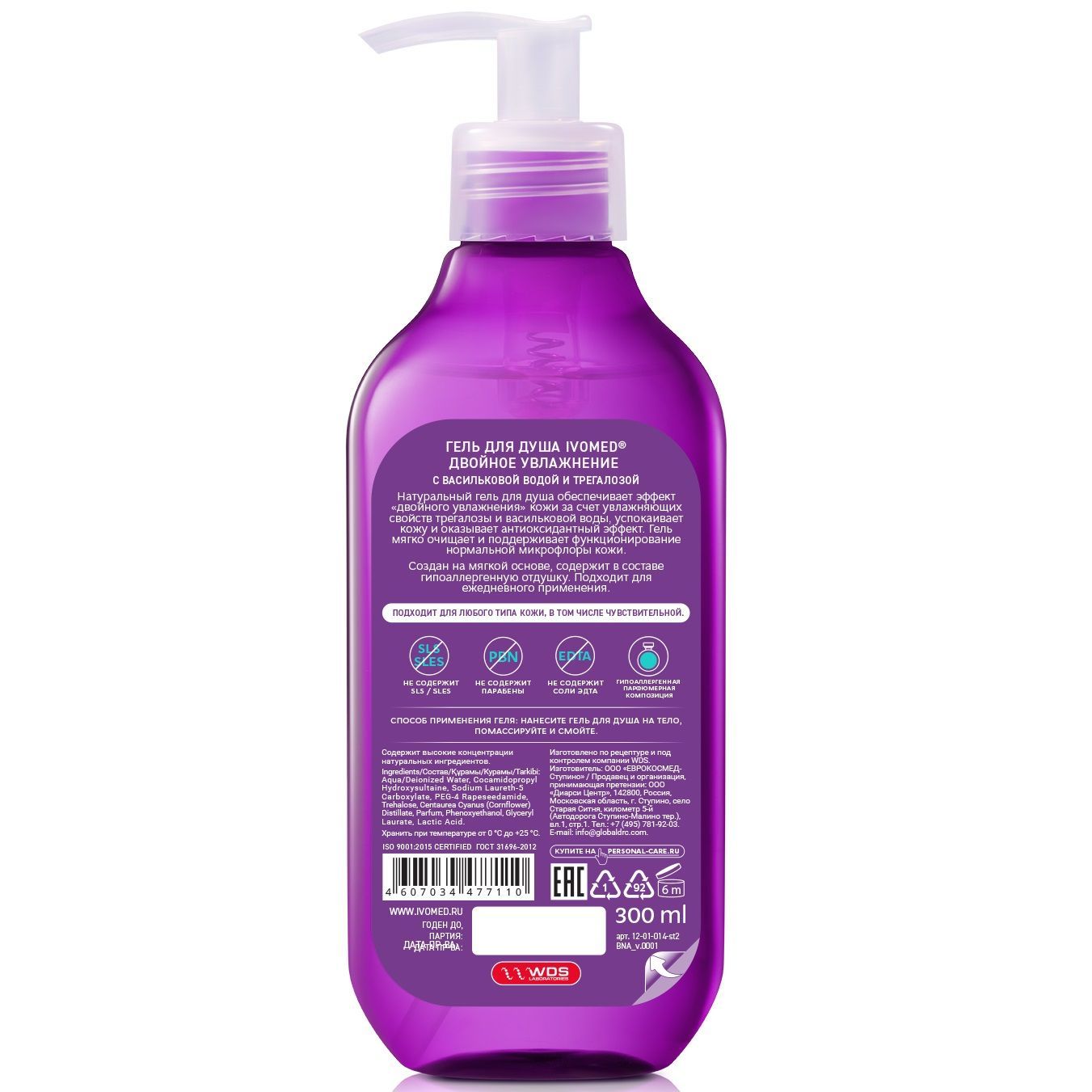 Натуральный гель для душа обеспечивает эффект «двойного увлажнения» кожи за счет увлажняющих свойств трегалозы и васильковой воды, успокаивает кожу и оказывает антиоксидантный эффект. Средство мягко очищает и поддерживает функционирование нормальной микрофлоры кожи.