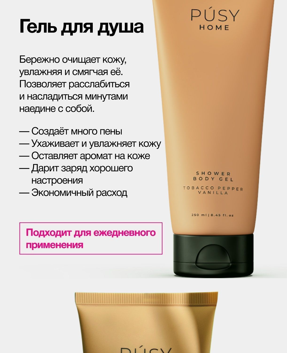 Парфюмированный гель для душа с ароматом табака, перца и ванили. Мягкая формула для деликатного очищения и увлажнения кожи. При нанесении на мочалку образует обильную пену, которая нежно ухаживает за телом и дарит прекрасное ощущение чистоты и свежести.