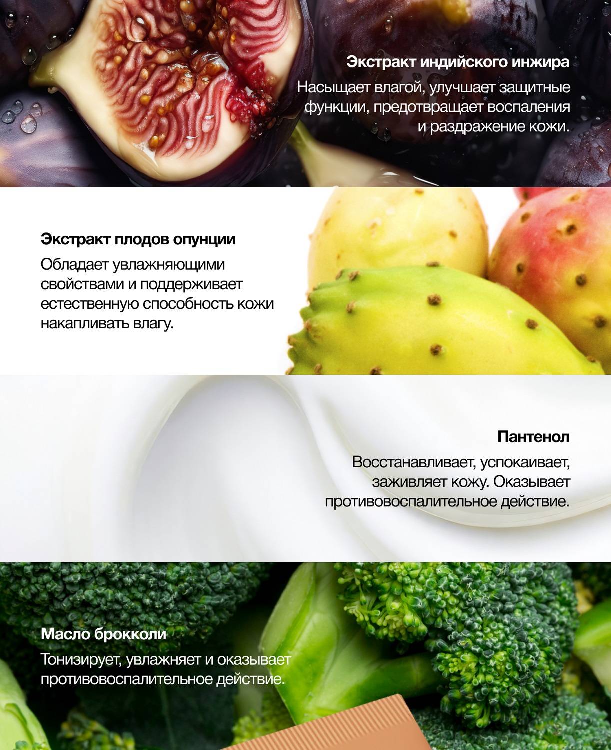 Активы: пантенол, масло брокколи, экстракт инжира, плоды опунции.