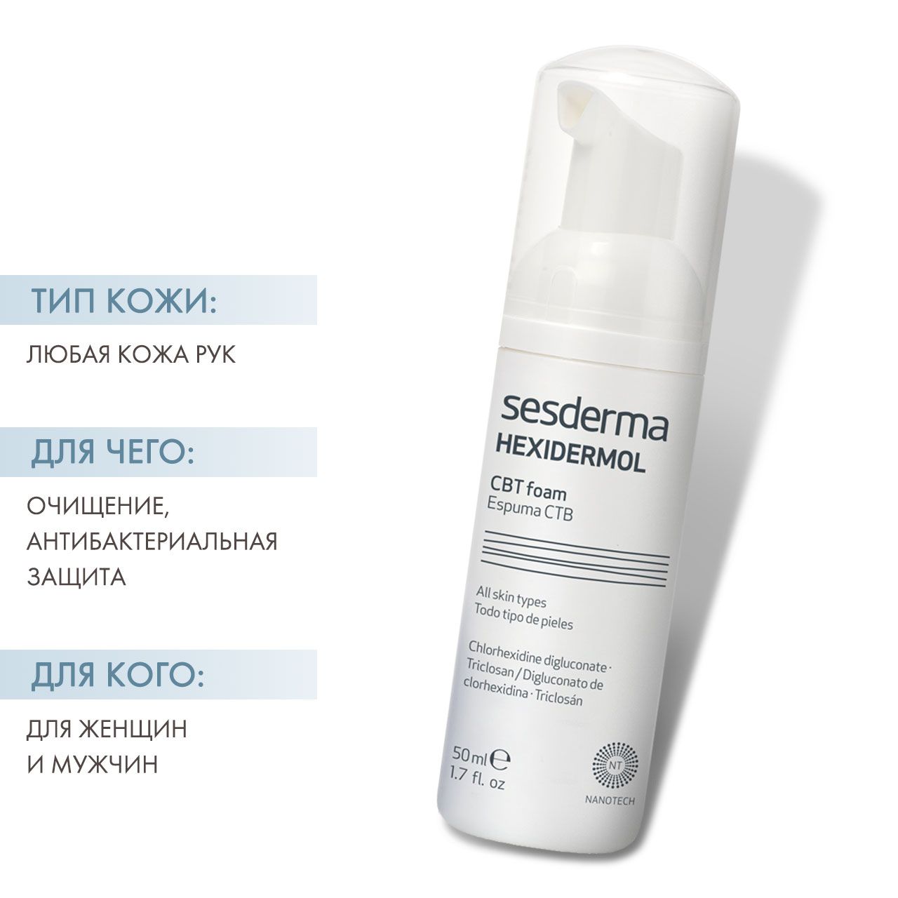 Пенка дезинфицирующая для рук . Хорошо увлажняет, смягчает и успокаивает, а также заживляет и восстанавливает кожу . В составе пенки есть противовоспалительного и антисептического действия хлоргексидина и триклозана защищает кожу от бактерий и грибков. Удобно брать в поездку маленький объем ,хорошая антибактериальная защита !