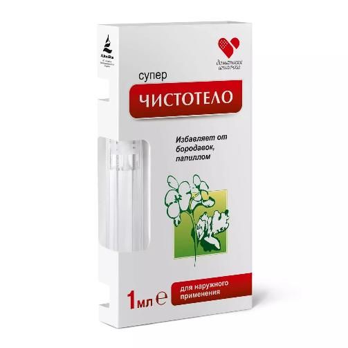 Для быстрого удаления бородавок и папиллом в комфортных домашних условиях создано средство «Суперчистотело», обладающее местным отшелушивающим действием. Эта косметическая жидкость, представляющая собой раствор щелочи, действует особенно эффективно после предварительного распаривания дефектного места. Для исключения травматизации здоровой кожи область вокруг образования перед процедурой смазывается жирным кремом.
