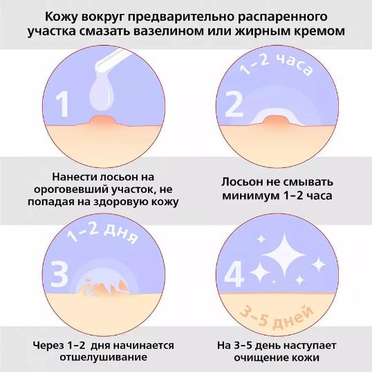 Предупреждение: не применять жидкость для ухода за кожей лица, в области паха и подмышек, на молочных железах. Не втирать. Не допускать попадания жидкости на здоровые участки и слизистые оболочки. При попадании средства «СуперФиточистотело» на здоровую кожу рекомендовано промывание пораженного участка струей воды в течение 10-15 минут, затем сделать примочку 5% раствором лимонной кислоты.