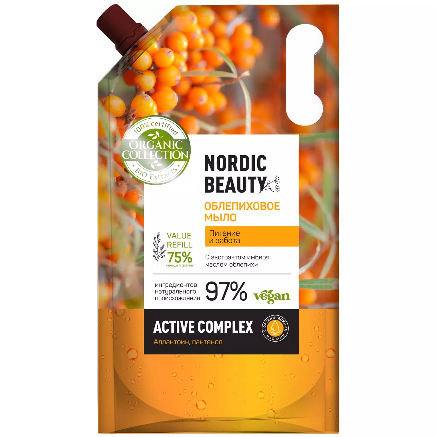 За счет экологичной упаковки, в которой на 75% меньше пластика, чем во флаконе, мыло Organic Collection заботится не только о ваших руках, но и о природе.