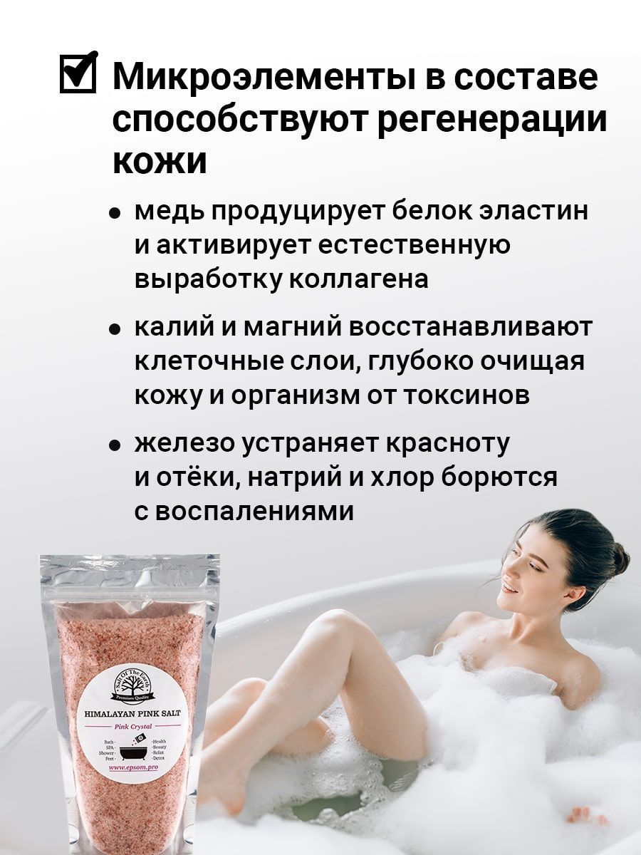 Для комплексного расслабляющего и косметологического эффекта смешивайте гималайскую соль с английской и морской солью в равных пропорциях.
