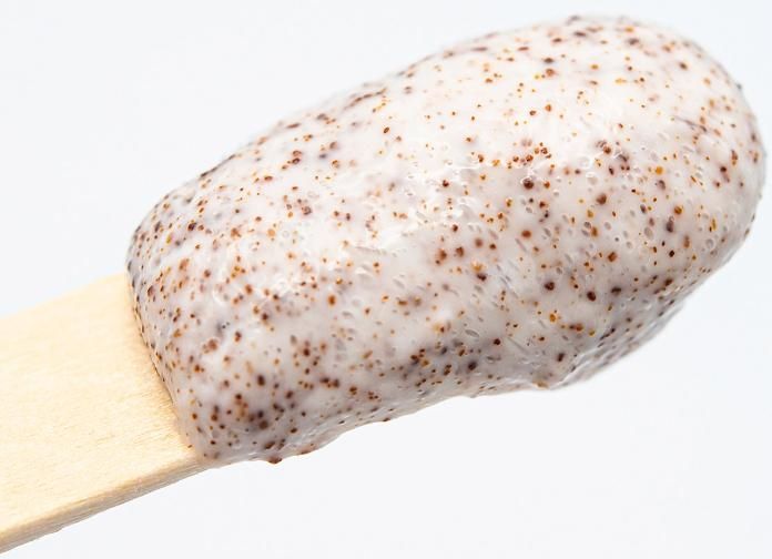 • мягкие абразивные частички бережно удаляют ороговевшие клетки, способствуя лёгкому проникновению витаминов, микроэлементов и других полезных компонентов скраба в глубокие слои кожи