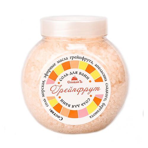 Соль для ванн Грейпфрут сделает обычный приём ванны гораздо приятнее и полезнее! Комбинация эфирных масел грейпфрута, апельсина сладкого и бергамота создает насыщенный цитрусовый аромат, который оказывает расслабляющее воздействие на нервную систему, тонизирует, снимает усталость и улучшает настроение. Кроме того, эфирные масла цитрусовых оказывают омолаживающее и подтягивающее действие, повышают упругость и эластичность кожи, эффективно борются с целлюлитом и растяжками. Морская соль содержит комплекс микро- и макроэлементов, которые улучшают состояние эпидермиса и восполняют недостающие минеральные вещества. Способствует более глубокому очищению кожи, нормализует кровообращение, смягчает кожу, обладает противовоспалительным и заживляющим эффектом.