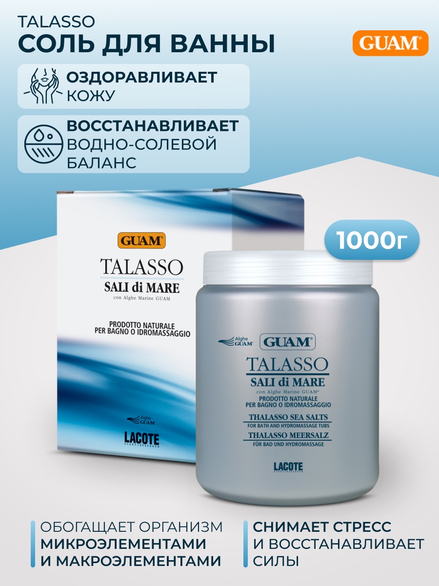 Полноценная спа-процедура в домашних условиях благодаря специальной соли Guam. Совместное воздействие компонентов способствует полноценному расслаблению и прекрасному самочувствию. Солевой природный пилинг, обогащённый ценными маслами и морскими композициями одновременно увлажняет, питает и минерализует кожу.