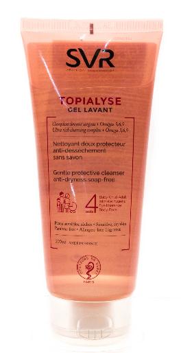 Топиализ очищающий гель нежно очищает и защищает от сухости кожу лица и тела. Благодаря омега-3-6-9 жирным кислотам гель смягчает кожу и уменьшает зуд. Средство не содержит мыла, имеет физиологический уровень pH и подходит для кожи лица и тела взрослых, детей и младенцев. Может использоваться для очищения кожи головы младенцев. Не раздражает глаза.