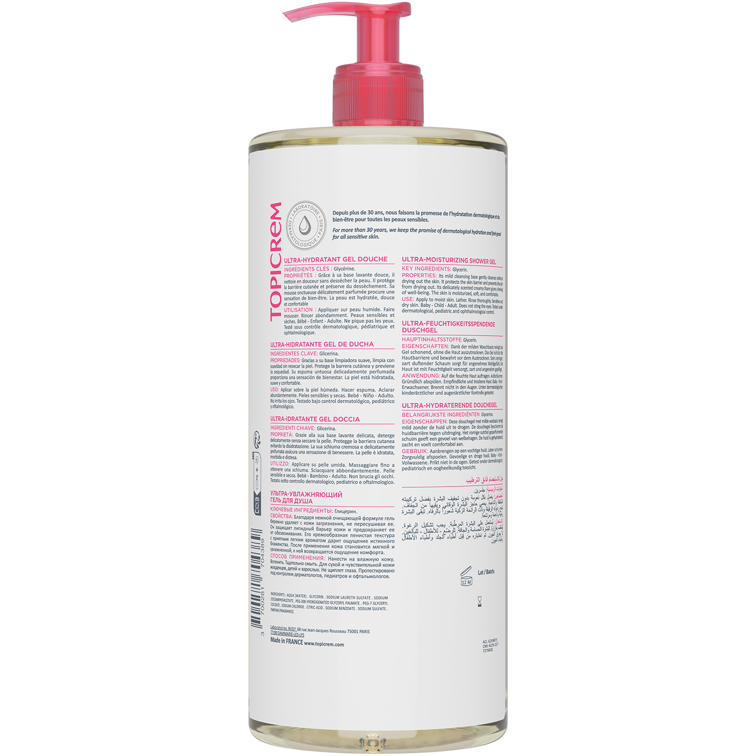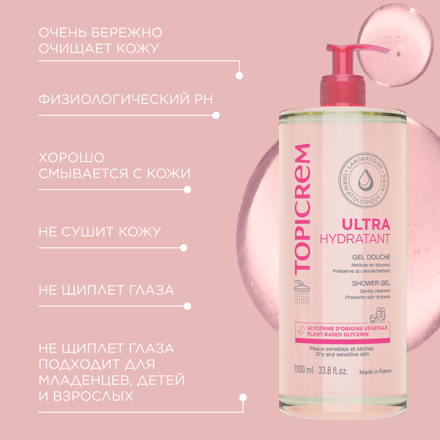 Ультра-увлажняющий гель разработан для очищения чувствительной и сухой кожи для всей семьи. Мягко очищает лицо, тело и волосы. Обогащен глицерином, который сохраняет защитный кожный барьер, делая кожу мягкой, увлажненной, а волосы гладкими и шелковистыми.