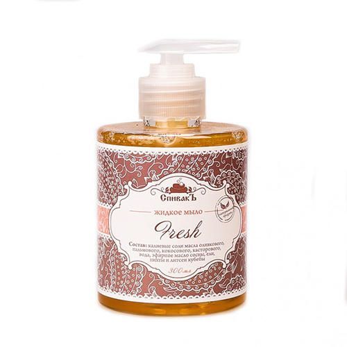 Жидкое мыло Fresh - бодрящее сочетание свежего запаха хвои с цитрусом! Композиция эфирных масел сосны, пихты, ели и литсея кубеба, которые являются антисептиками, повышают упругость кожи, ускоряют регенерационные процессы, помогают более быстрому выведению токсинов, эффективны в борьбе с гнойничками, дерматитами, экземой. Отличительной особенностью всех видов жидкого мыла СпивакЪ является отсутствие ПАВ, они не сушат кожу!