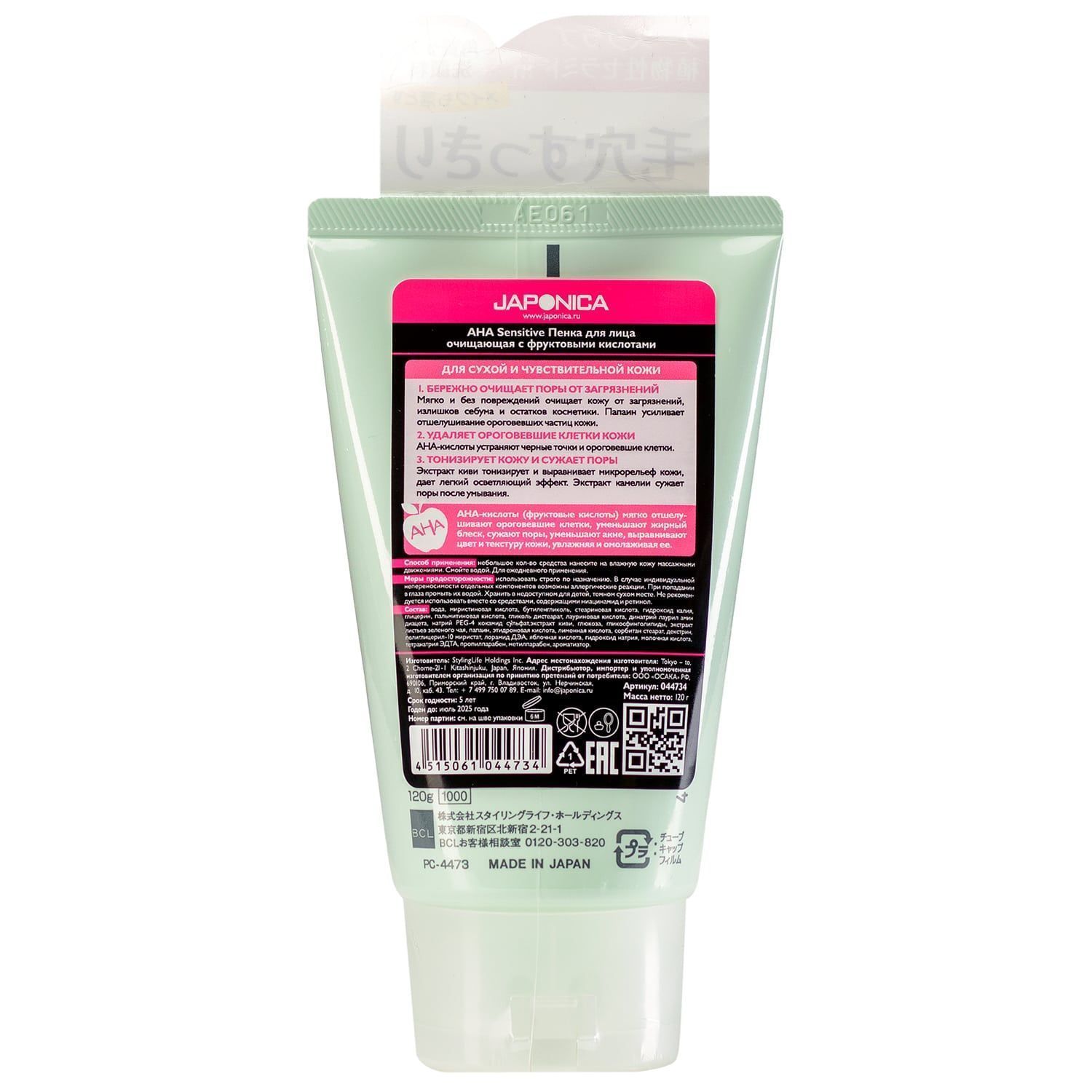Для сухой и чувствительной кожи. АНА-кислоты (фруктовые кислоты) – один из самых эффективных косметических компонентов, который можно получить из обычных яблок, цитрусов и тростника. АНА-кислоты решают сразу несколько проблем кожи: мягко отшелушивают мертвые клетки, уменьшают жирный блеск, сужают поры, уменьшают акне, выравнивают цвет и текстуру кожи, омолаживают ее, стимулируя выработку эластина и коллагена, а также глубоко увлажняют кожу. 1. Бережное очищает поры от загрязнений. Мягко и без повреждений очищает кожу от загрязнений, излишков себума и остатков косметики. Папаин усиливает отшелушивание ороговевших частиц кожи. 2. Удаляет ороговевшие клетки кожи при каждом применении. АНА-кислоты устраняют черные точки и ороговевшие клетки. 3. Тонизирует кожу и сужает поры. Экстракт киви тонизирует и выравнивает микрорельеф кожи, дает легкий осветляющий эффект. Экстракт камелии сужает поры после умывания.