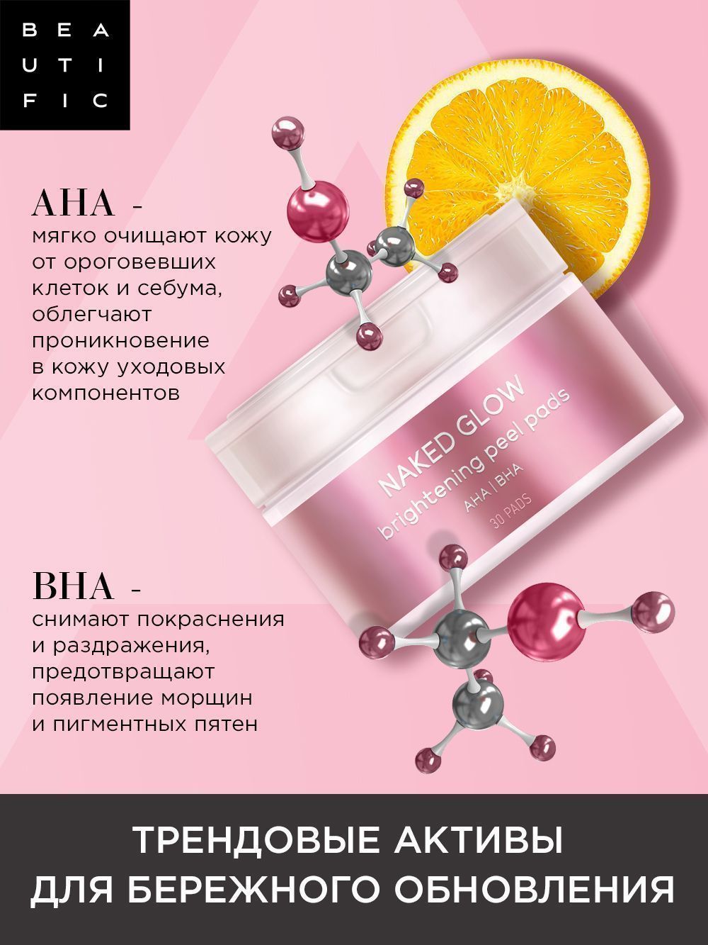 Две стороны одного пилинг-пэда делают чудеса для твоей кожи. Диски Naked Glow - это деликатное очищение и пилинг для активации сияния на каждый день! Обновляющая формула пилинг-дисков с AHA и BHA кислотами устраняет глубокие загрязнения, не повреждая кожу, удаляет ороговевшие клетки, выравнивает текстуру.