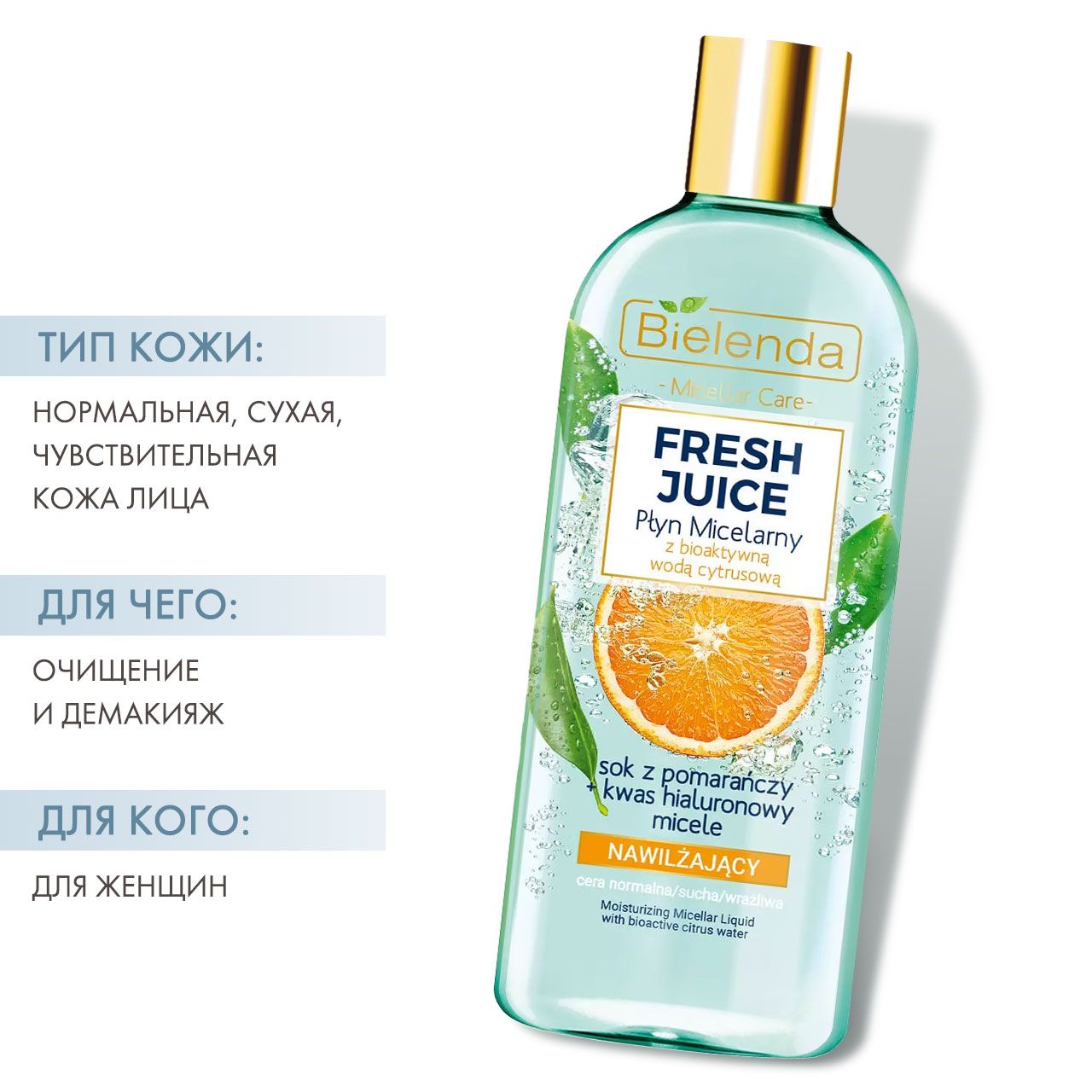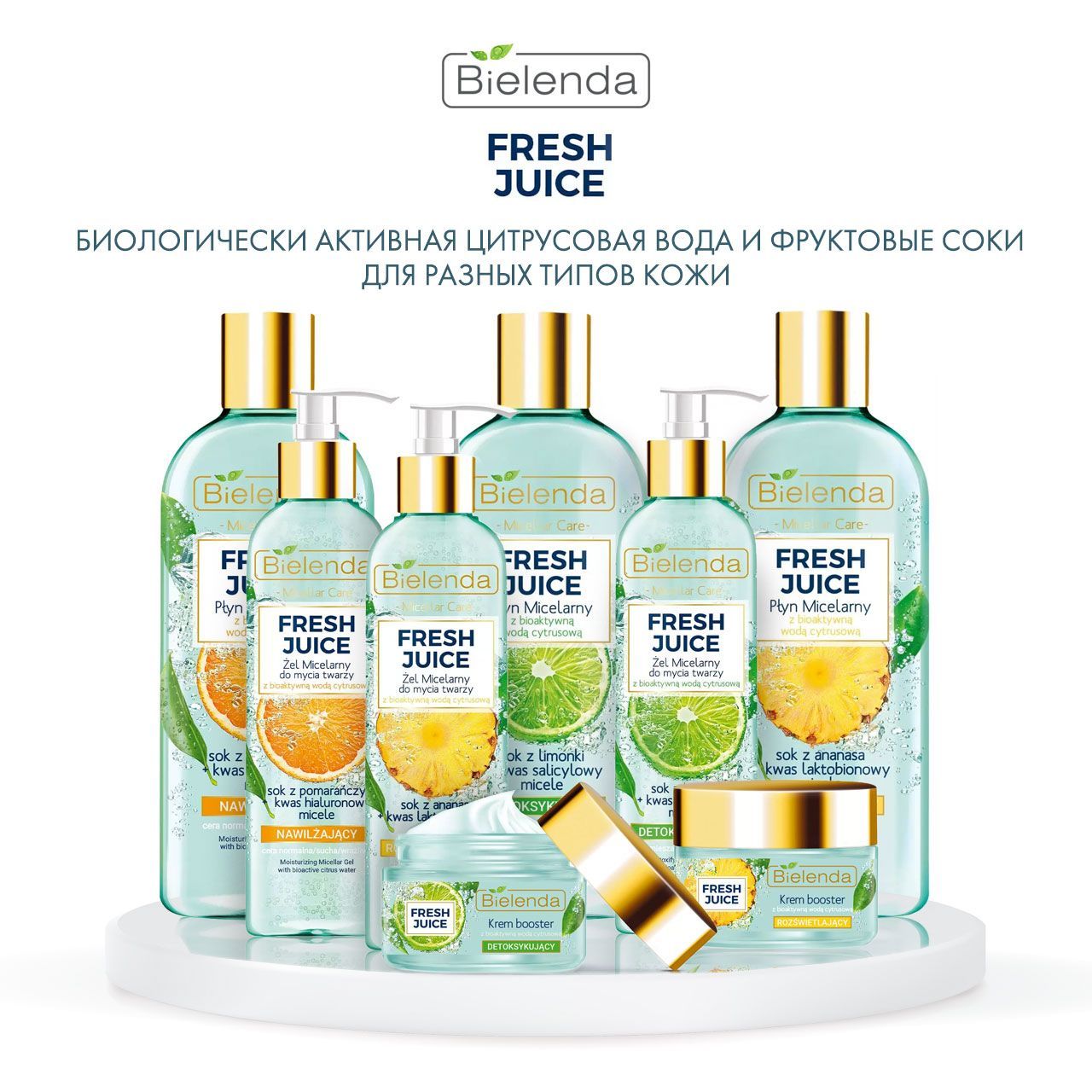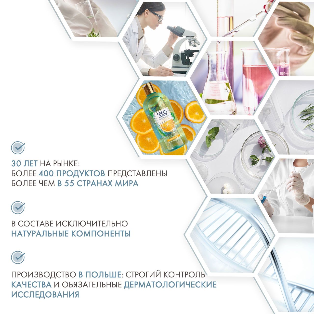 Fresh Juice -линия для очищения и ухода за лицом с биологически активной цитрусовой водой и фруктовыми соками. Включает три направления продуктов для разных типов кожи - апельсин, лайм и ананас. "Апельсин" рекомендован для нормальной, сухой и чувствительной кожи.