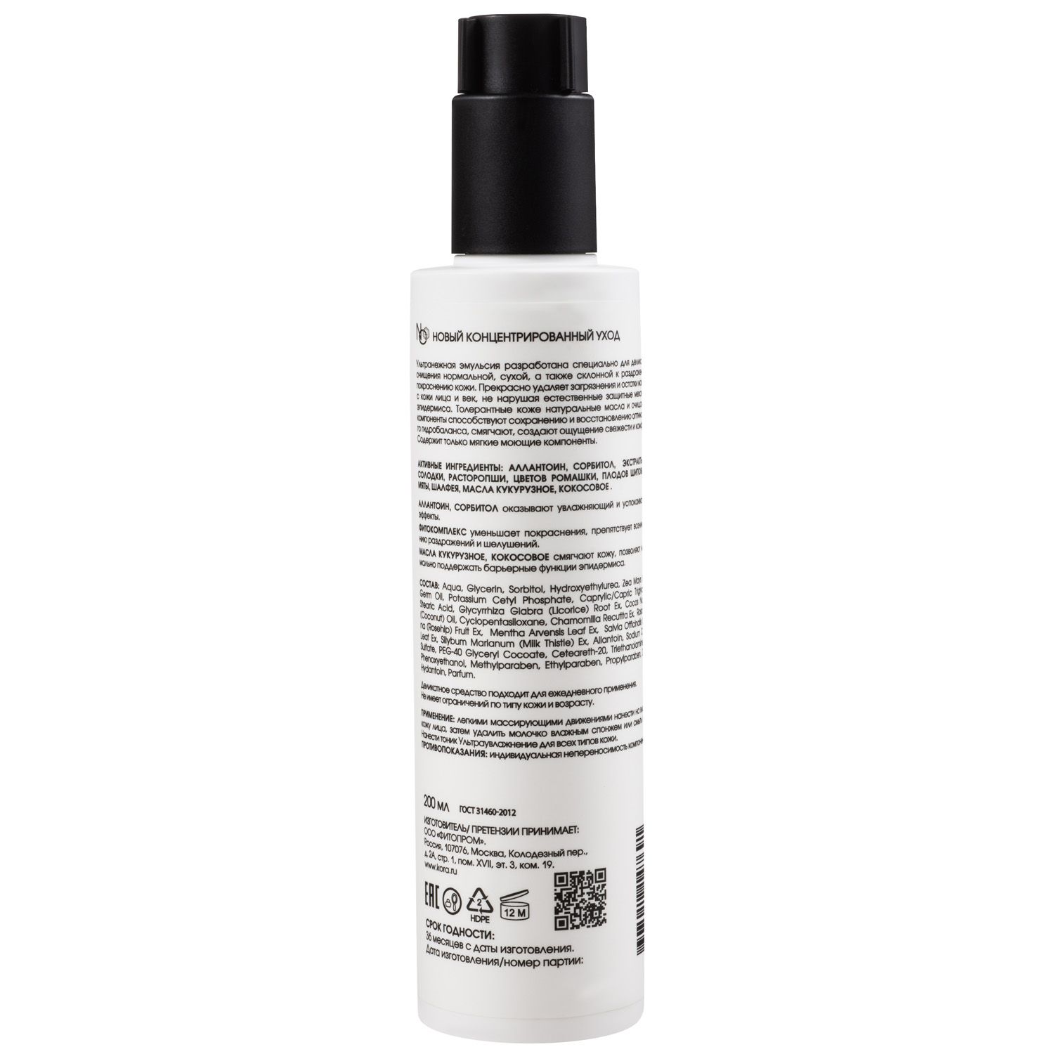 Состав: Aqua, glycerin, sorbitol, hydroxyethylurea, zea mays (corn) germ oil, potassium cetyl phosphate, caprylic/capric triglyceride, stearic acid, glycyrrhiza glabra (licorice) root extract, cocos nucifera (coconut) oil, cyclopentasiloxane, chamomilla recutita extract, rosa canina (rosehip) fruit extract, mentha arvensis leaf extract, salvia officinalis (sage) leaf extract, silybum marianum (milk thistle) extract, allantoin, sodium coceth sulfate, peg-40 glyceryl cocoate, ceteareth-20, triethanolamine, внт, phenoxyethanol, methylparaben, ethylparaben, propylparaben, dmdm hydantoin, parfum.