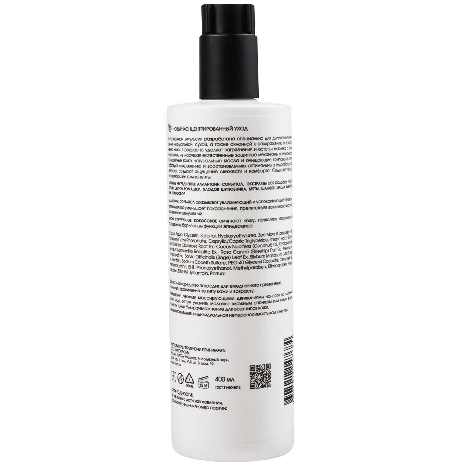 Состав: aqua, glycerin, sorbitol, hydroxyethylurea, zea mays (corn) germ oil, potassium cetyl phosphate, caprylic/capric triglyceride, stearic acid, glycyrrhiza glabra (licorice) root extract, cocos nucifera (coconut) oil, cyclopentasiloxane, chamomilla recutita extract, rosa canina (rosehip) fruit extract, mentha arvensis leaf extract, salvia officinalis (sage) leaf extract, silybum marianum (milk thistle) extract, allantoin, sodium coceth sulfate, peg-40 glyceryl cocoate, ceteareth-20, triethanolamine, внт, phenoxyethanol, methylparaben, ethylparaben, propylparaben, dmdm hydantoin, parfum.