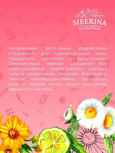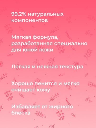 Натуральная фито-пенка разработана специально для чувствительной кожи подростков, склонной к раздражениям и высыпаниям. Обеспечивает нежное очищение без пересушивания, увлажняет и смягчает кожу, удаляя избыток кожного сала и загрязнения, помогает бороться с такими несовершенствами кожи, как прыщи, угри и черные точки. Дарит ощущение свежести и чистоты после умывания.