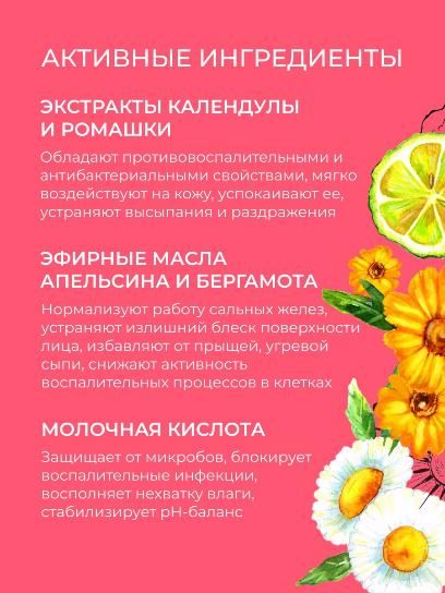 • экстракты календулы и ромашки - обладают противовоспалительными и антибактериальными свойствами, мягко воздействуют на кожу, успокаивают ее, устраняют высыпания и раздражения