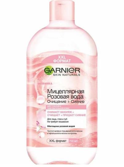 Мицеллярная вода с розовой водой эффективно удаляет косметику и загрязнения с лица, глаз и губ, увлажняет и успокаивает чувствительную кожу. Мицеллы, как магнит, притягивают грязь, излишки себума, макияж и с помощью ватного диска удаляют их с поверхности кожи без лишнего трения. Цитрусовые кислоты в составе улучшают цвет лица, осветляют и выравнивают тон, придают тусклой коже сияние. Розовая вода оказывает противовоспалительное и успокаивающее действие.