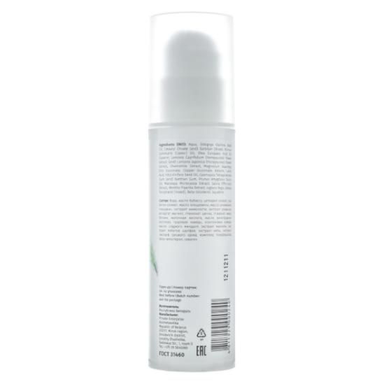 Вода, Масло бабассу, Цетеарил оливат, сорбитан оливат, Масло клещевины, Масло оливковое , Глицерин, Экстракт жимолости СК-СО2, Экстракт ромашки СК-СО2, Глюконат цинка, глюконат меди, аспартат магния, Пантенол, Молочная кислота , Масло виноградных косточек, Гуаровая камедь, Ксантановая камедь, Масло сладкого миндаля , Экстракт маклейи СК-СО2, Экстракт побегов шалфея СК-СО2, Экстракт мяты СО2, Экстракт листьев грецкого ореха СК-СО2, Витамин Е.