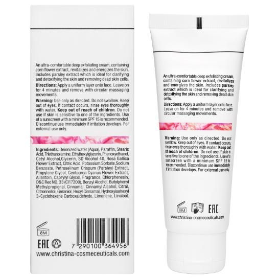 Активы: парафин, розовая вода, экстракт синего василька, экстракт петрушки, комплекс ActiRose, аллантоин.