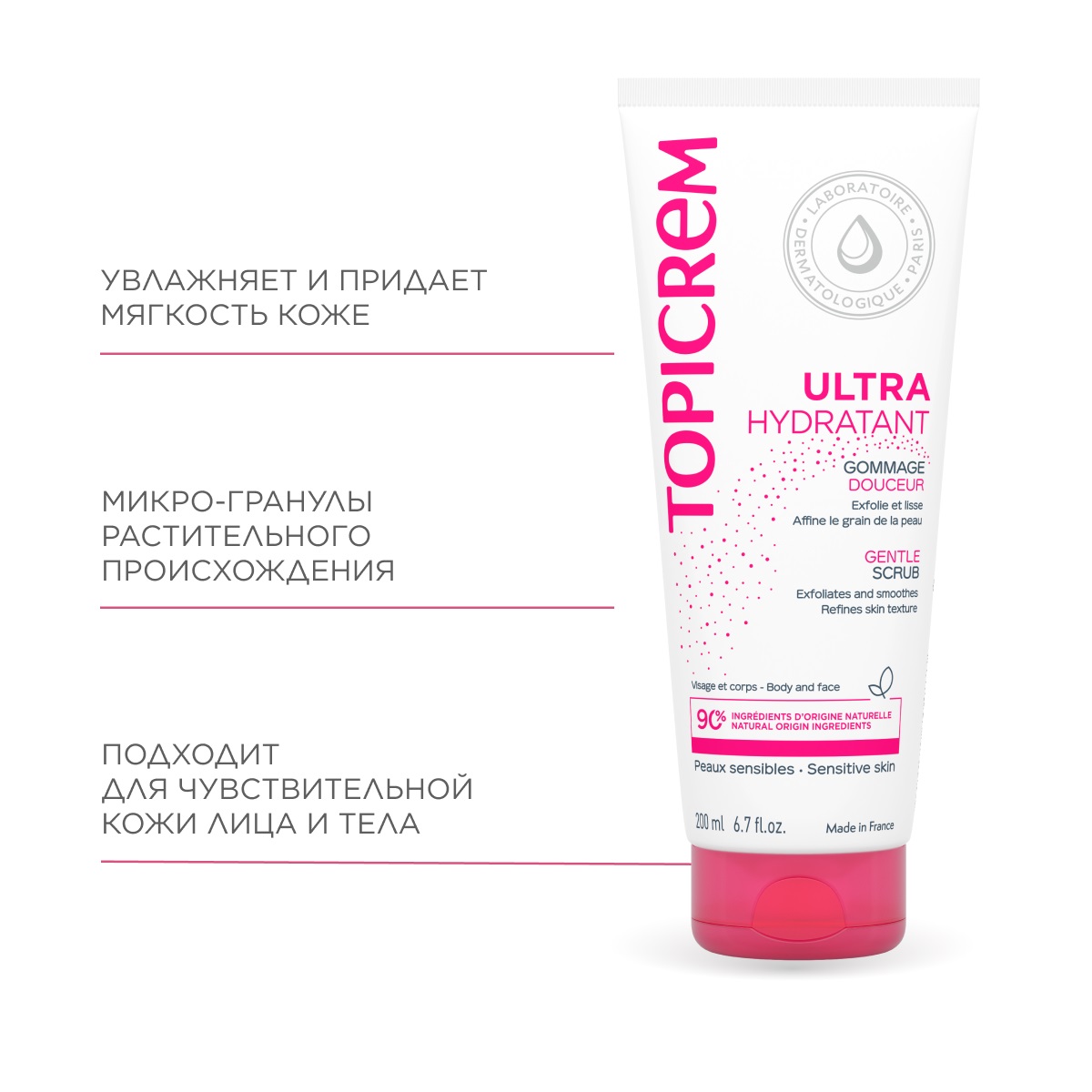 Этот скраб предназначен для чувствительной кожи лица и тела.Использую его два раза в неделю.У скраба прозрачная гелевая основа и белые микрогранулы растительного происхождения , очень мягкие , не царапают кожу, мягко отшелушивают омертвевшие клетки , не вызывают раздражения.После него кожа гладкая , нежная , нет сухости кожи, главное- нет раздражений.Очень мне нравится.Хороший скраб.
