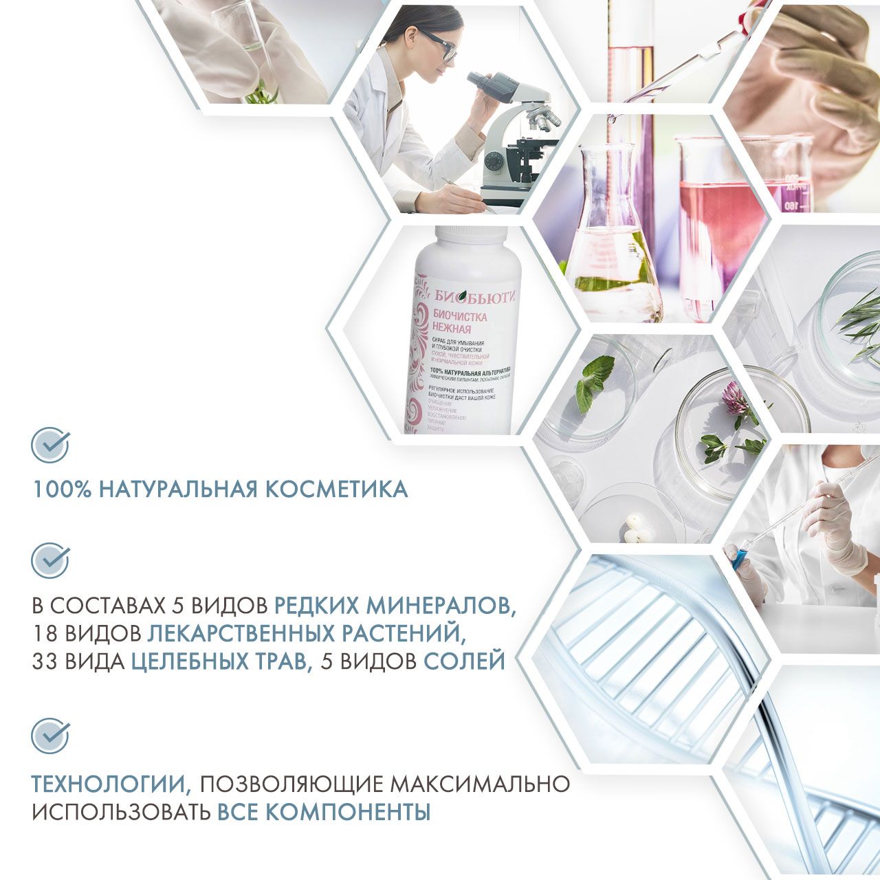 Биочистка способствует глубокому очищению кожи, она прекрасно отшелушивает мертвые частички. Если вы мечтаете о чистой, увлажненной, свежей и сияющей коже, то Биочистка Нежная создана именно для вас. Биочистка представляет собой сухой порошок, состоящий из природных ингредиентов. В состав средства входят такие полезные компоненты, как минерал цеолит, каолиновые глины, природный диосмектит, тальк и соли. Натуральная косметика, содержащая цеолит, стимулирует обмен веществ, насыщает клетки кожи полезными элементами, обеспечивает нормальное увлажнение кожи. Цеолит эффективно очищает, устраняет загрязнения, делает кожу свежей и красивой. Этот минерал активирует полезное действие других компонентов Биочистки, способствует их проникновению глубоко в кожу. Многочисленные изучения биочистки и исследования кожи, очищенной с помощью данного средства, подтверждают ее эффективность: кожа отлично увлажняется, устраняется шелушение; выводятся шлаки и токсины; кожа насыщается микро- и макроэлементами, оперативно восстанавливается ее липидный барьер; морщины разглаживаются благодаря обновлению коллагена; кровеносные сосуды укрепляются, кровообращение ускоряется, за счет чего улучшается цвет лица; защитные функции кожи усиливаются; обменные процессы нормализуются; кожа осветляется, менее заметен купероз. Кожа после чистки становится гладкой, упругой и подтянутой.