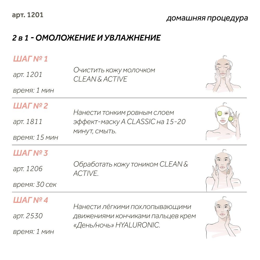 Нанесите достаточное количество средства на влажные руки и очистите кожу лёгкими массажными движениями. Смойте водой и протонизируйте кожу.