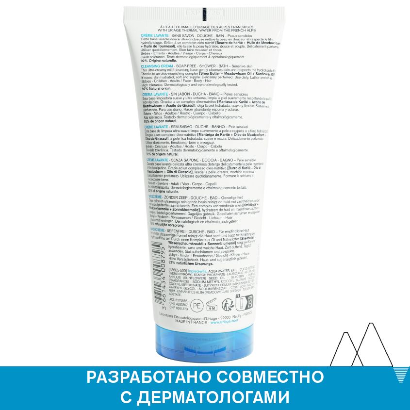 Очищающий пенящийся крем разработан для чувствительной кожи новорожденных, детей и взрослых. Подходит для лица, тела, кожи головы (у новорожденных). Бережно очищает и питает кожу без мыла, не нарушая защитные свойства кожи. Образует мягкую пену, не раздражает слизистые глаз. Комплекс питательных масел (масло ши, масло пенника лугового и масло подсолнечника) смягчает и питает. Термальная вода Урьяж увлажняет, способствует восстановлению и сохранению целостности гидролипидной пленки.