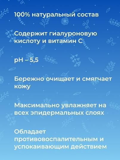 Натуральная пенка с гиалуроновой кислотой и витамином С мягко удаляет загрязнения, частички пыли, излишки кожного жира, а также эффективно снимает макияж, даже стойкий. Средство глубоко очищает поры, выравнивает и улучшает цвет лица, делает кожу мягкой и бархатистой.