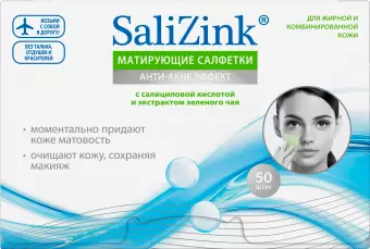Матирующие салфетки с салициловой кислотой и экстрактом зеленого чая "Анти-акне эффект" для жирной и комбинированной кожи.