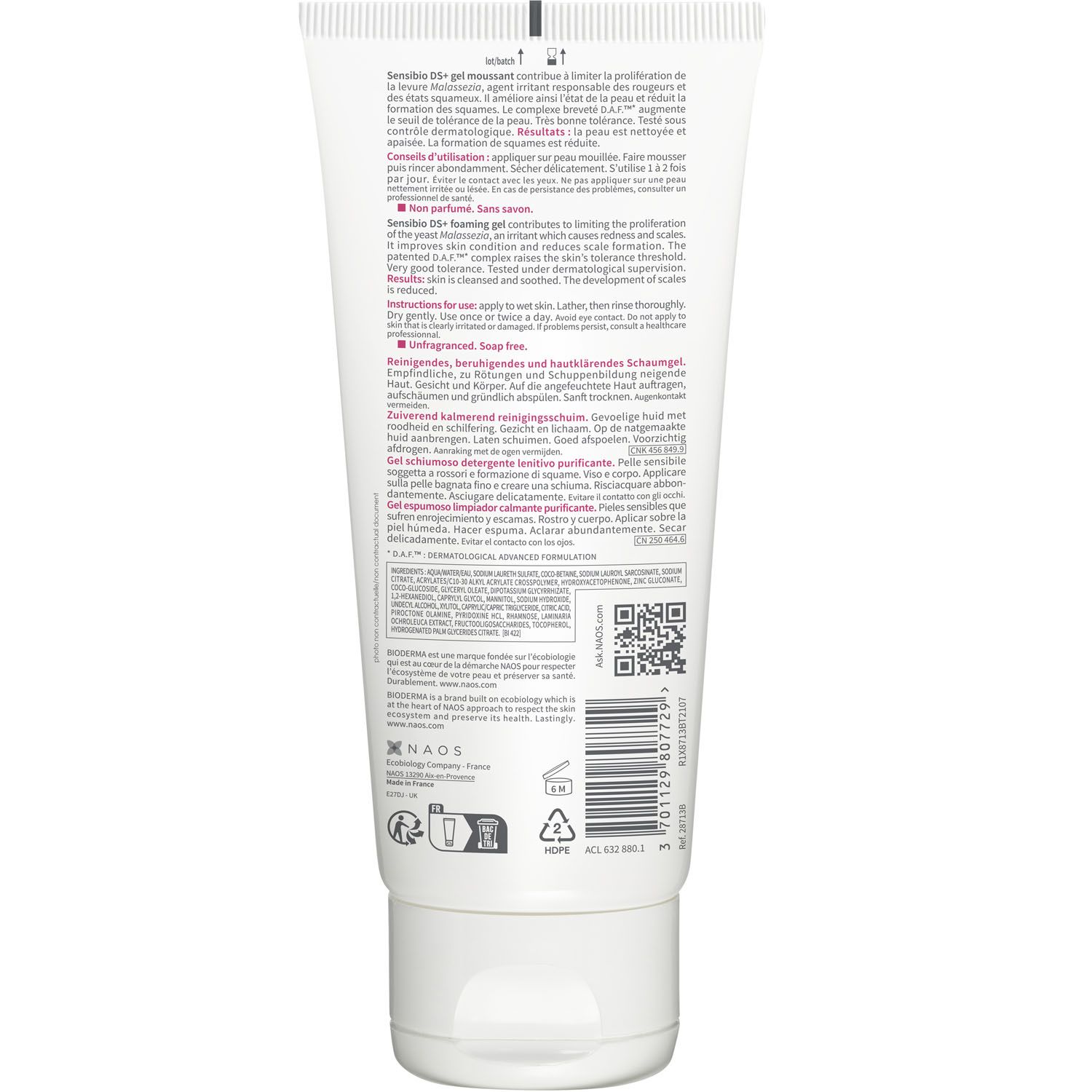 Состав: aqua/water/eau, sodium laureth sulfate, coco-betaine, sodium lauroyl sarcosinate, sodium citrate, acrylates/c10-30 alkyl acrylate crosspolymer, hydroxyacetophenone, zinc gluconate, coco-glucoside, glyceryl oleate, dipotassium glycyrrhizate, 1,2-hexanediol, caprylyl glycol, mannitol, sodium hydroxide, undecyl alcohol, xylitol, caprylic/capric triglyceride, citric acid, piroctone olamine, pyridoxine hcl, rhamnose, laminaria ochroleuca extract, fructooligosaccharides, tocopherol, hydrogenated palm glycerides citrate {422v7.1}