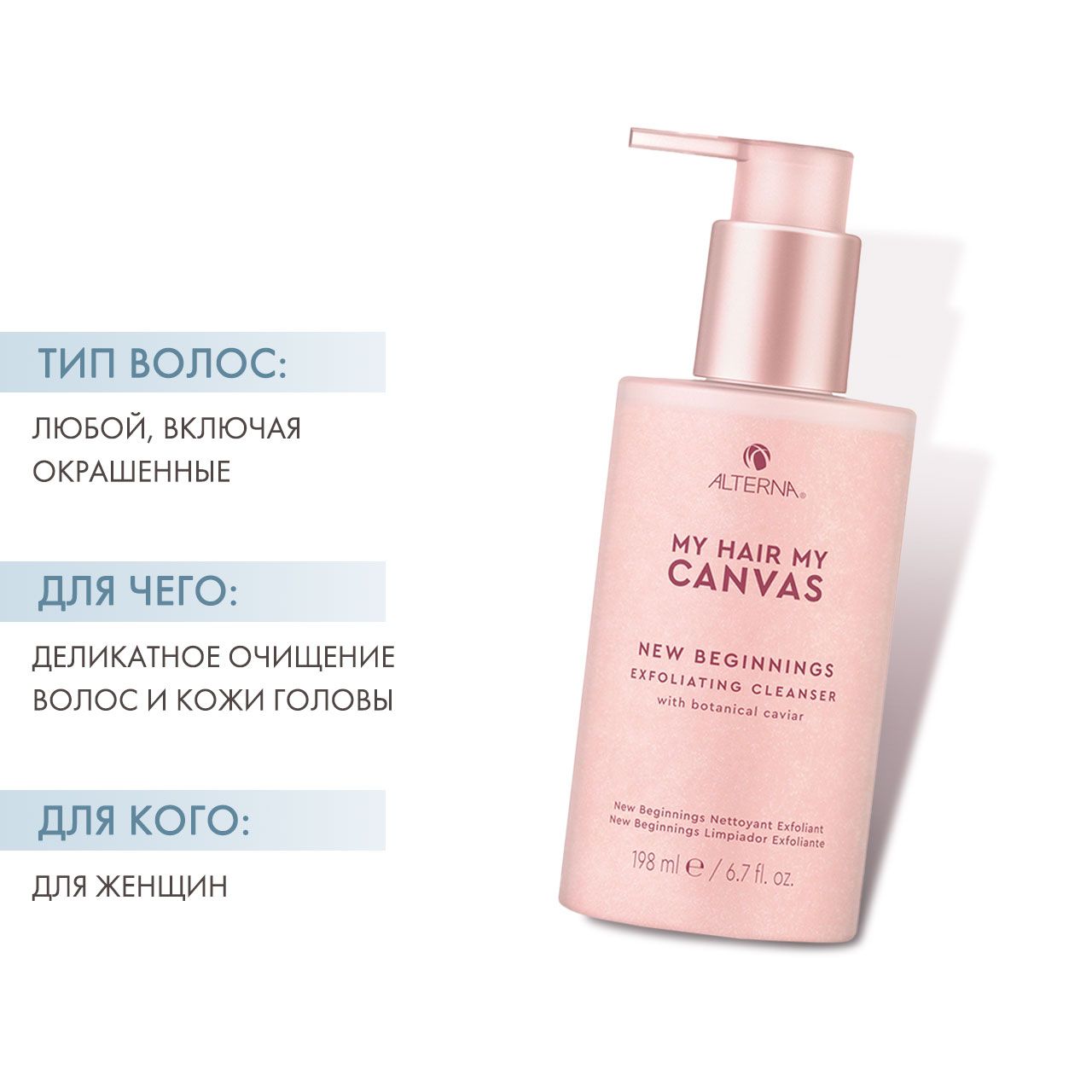 Мягкий веганский скраб-эксфолиант деликатно очищает волосы и кожу головы, удаляет загрязнения и скопления стайлинговых средств с поверхности волос, не вымывает цвет окрашенных волос.