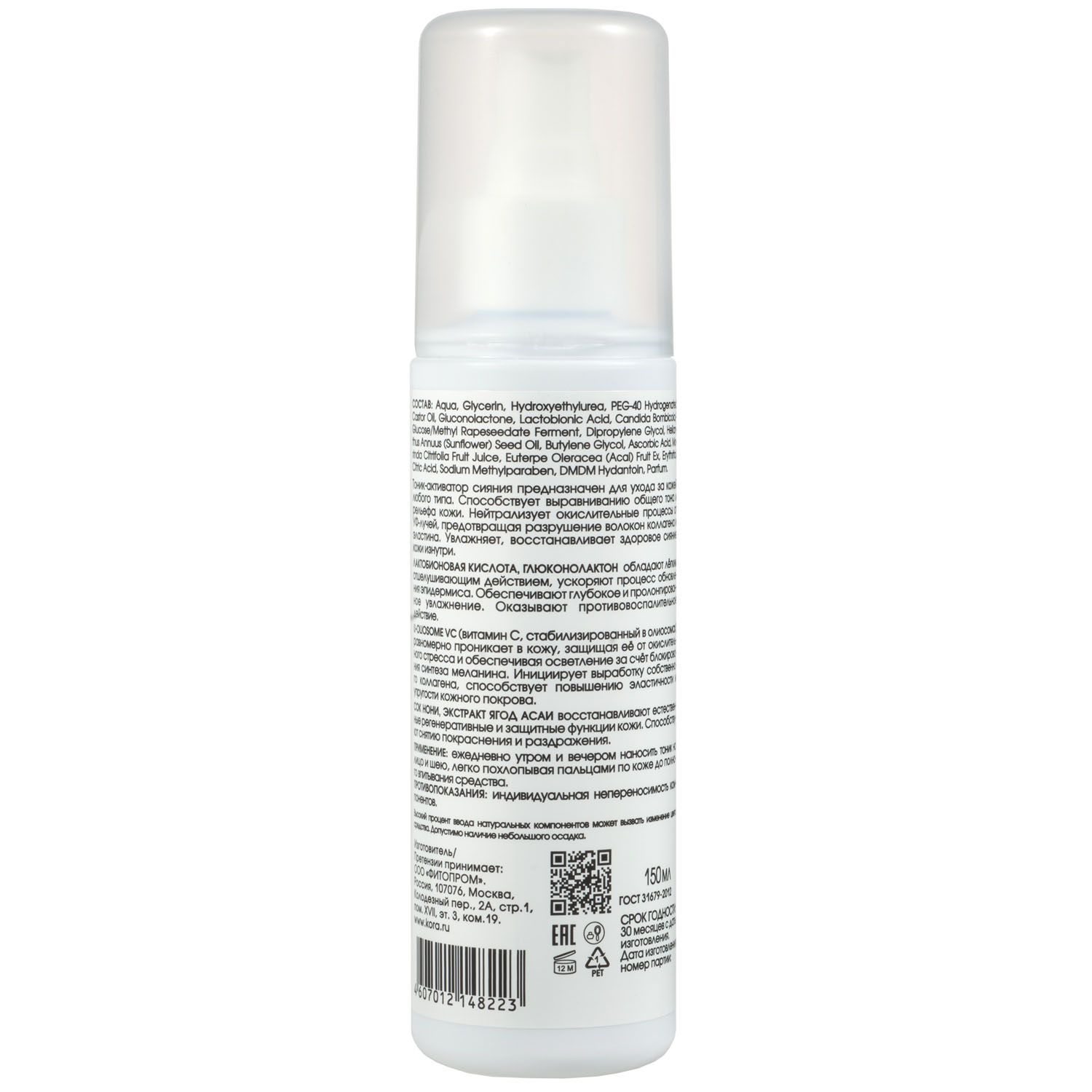 Состав: aqua, glycerin, hydroxyethylurea, peg-40 hydrogenated castor oil, gluconolactone, lactobionic acid, candida bombicola/glucose/methyl rapeseedate ferment, dipropylene glycol, helianthus annuus (sunflower) seed oil, butylene glycol, ascorbic acid, morinda citrifolia fruit juice, euterpe oleracea (acai) fruit extract, erythritol, citric acid, sodium methylparaben, dmdm hydantoin, parfum.