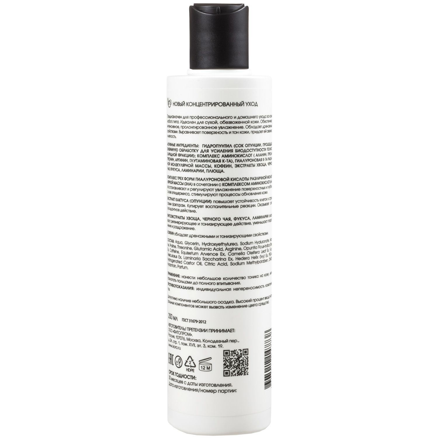 Состав: aqua, glycerin, hydroxyethylurea, sodium hyaluronate, alanine, proline, threonine, glutamic acid, arginine, opuntia ficus-indica stem extract, caffeine, equisetum аrvence extract, camelia oleifera leaf exctract, fucus vesiculosus extract, laminaria saccharina extract, hedera helix (ivy) extract, peg-40 hydrogenated castor oil, citric acid, sodium methylparaben, dmdm hydantoin, parfum.