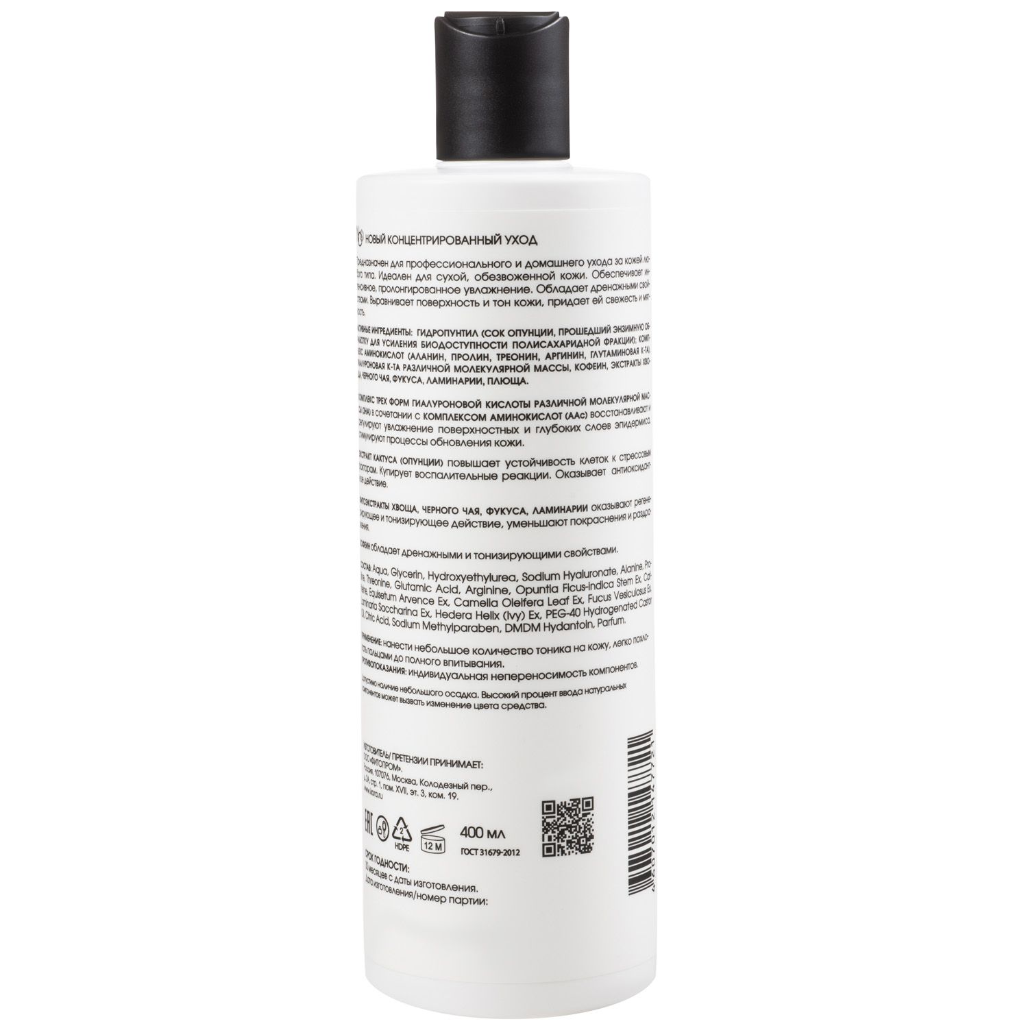 Состав: aqua, glycerin, hydroxyethylurea, sodium hyaluronate, alanine, proline, threonine, glutamic acid, arginine, opuntia ficus-indica stem extract, caffeine, equisetum аrvence extract, camelia oleifera leaf exctract, fucus vesiculosus extract, laminaria saccharina extract, hedera helix (ivy) extract, peg-40 hydrogenated castor oil, citric acid, sodium methylparaben, dmdm hydantoin, parfum.