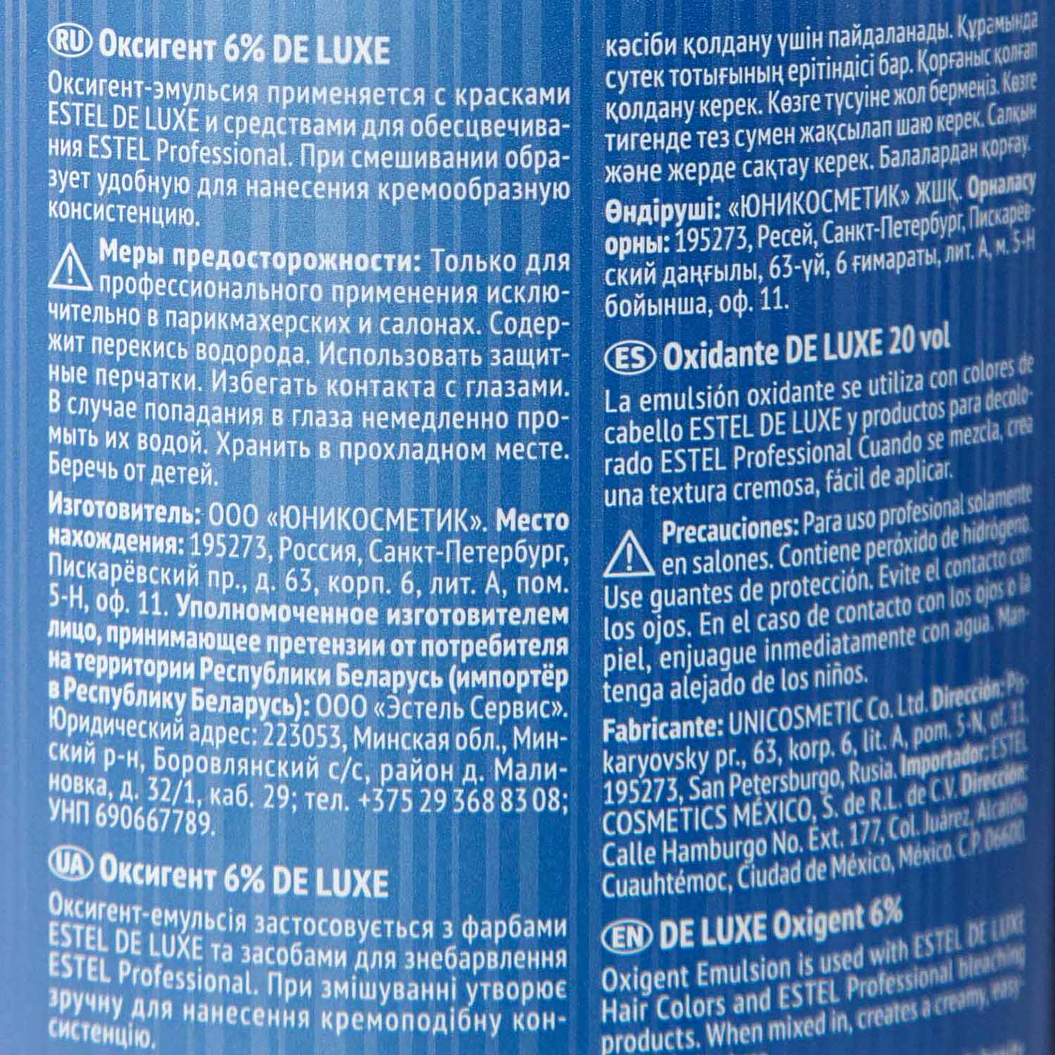Специально разработанный стабилизированный оксигент в виде эмульсии молочного цвета. Позволяет доcтичь наилучших результатов с крем-красками Estel De Luxe.