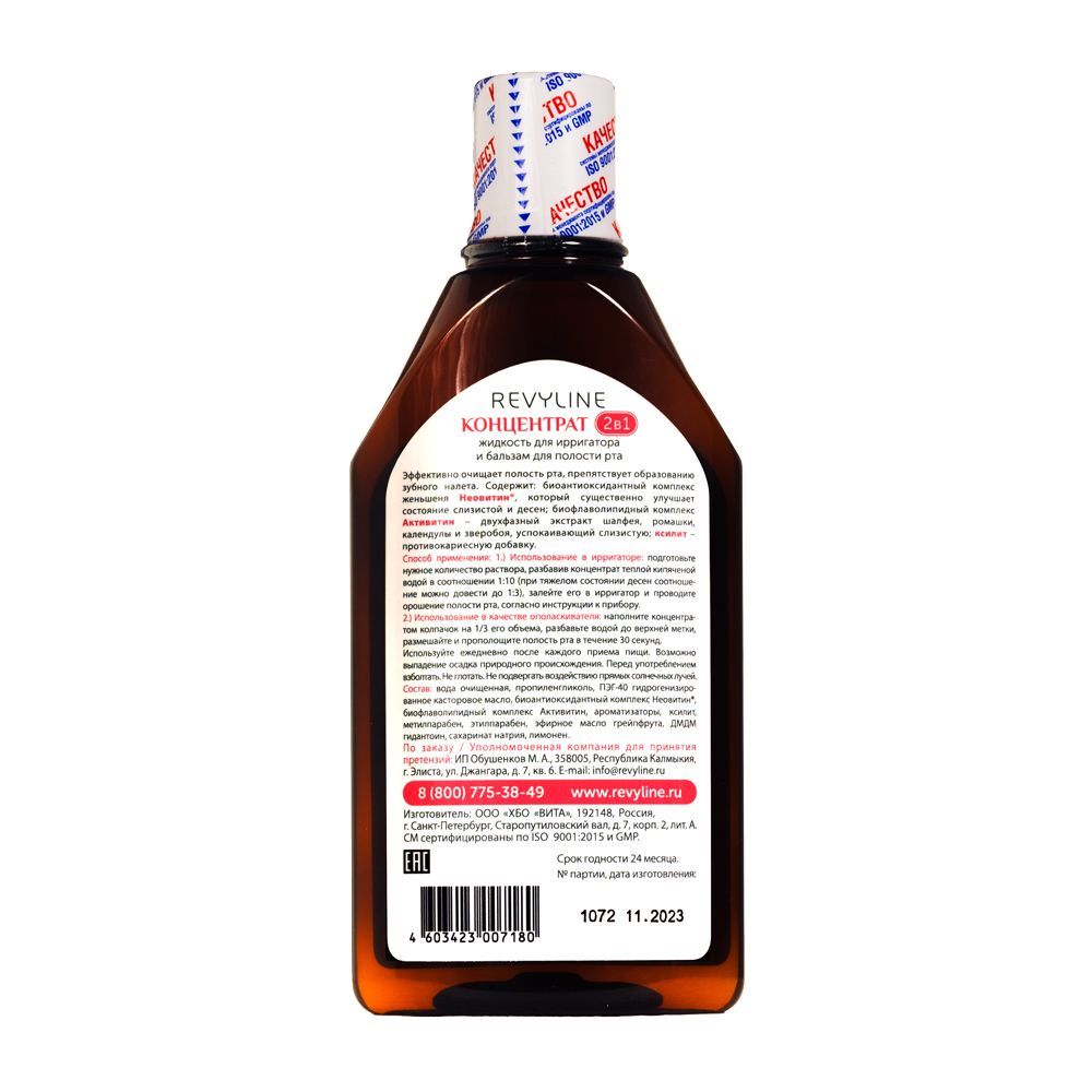 Концентрат Revyline используется как для приготовления раствора для ирригатора, так и для традиционного ополаскивания полости рта.