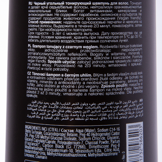 Шампунь дает очень крутой холодный отлив. В отличие от фиолетовых средств, угольный пигмент ложится мягче, создавая благородную серую дымку без синевы.Уголь в составе хорошо очищает кожу головы от стайлинга, а сами волосы при этом остаются мягкими. Цвет получается чистым, стальным, а блеск — зеркальным