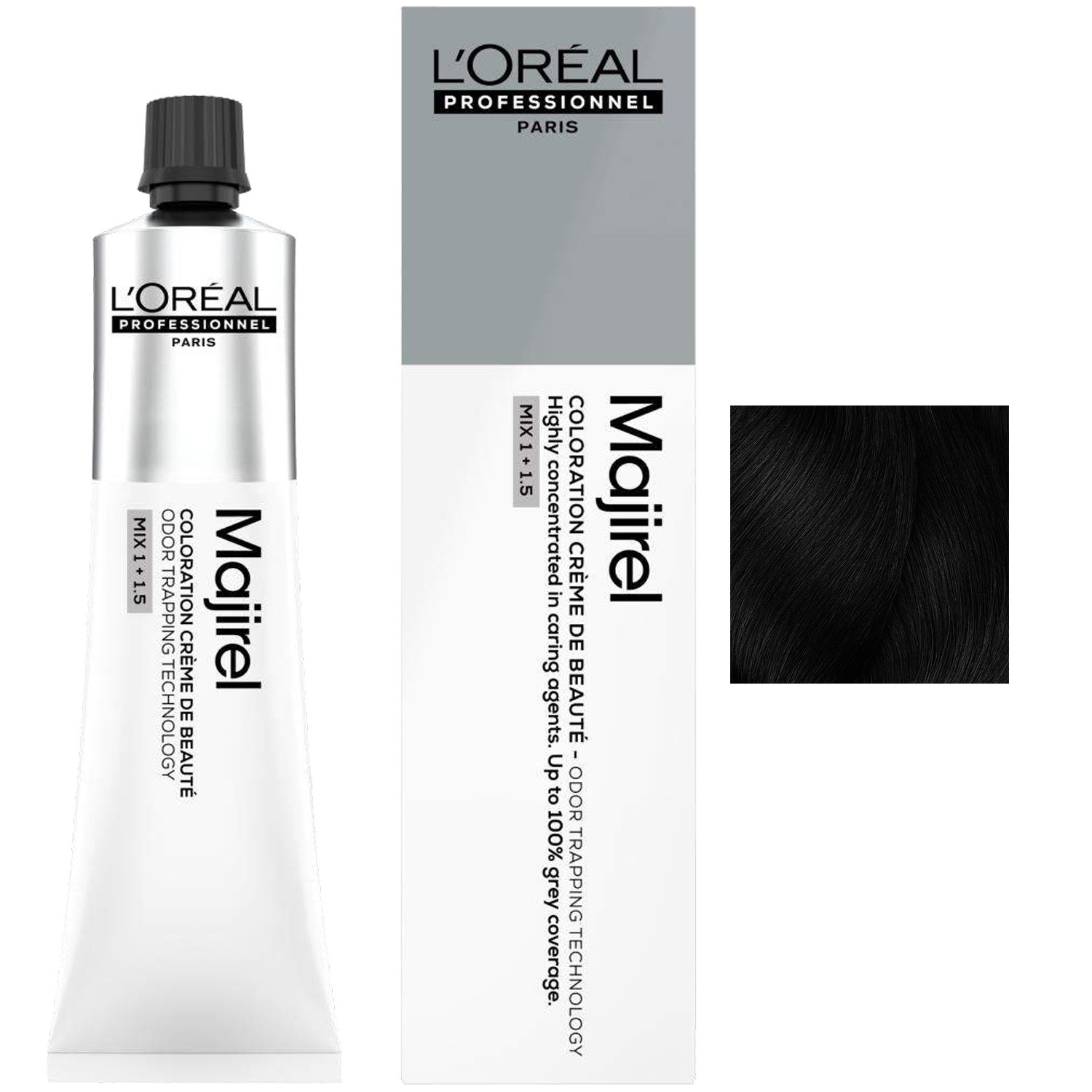 Для приготовления смеси используйте 1 тюбик красителя-крема Majirel 60 мл + 90 мл оксидент-крема с технологией улавливания запахов Odor Trapping Technology.