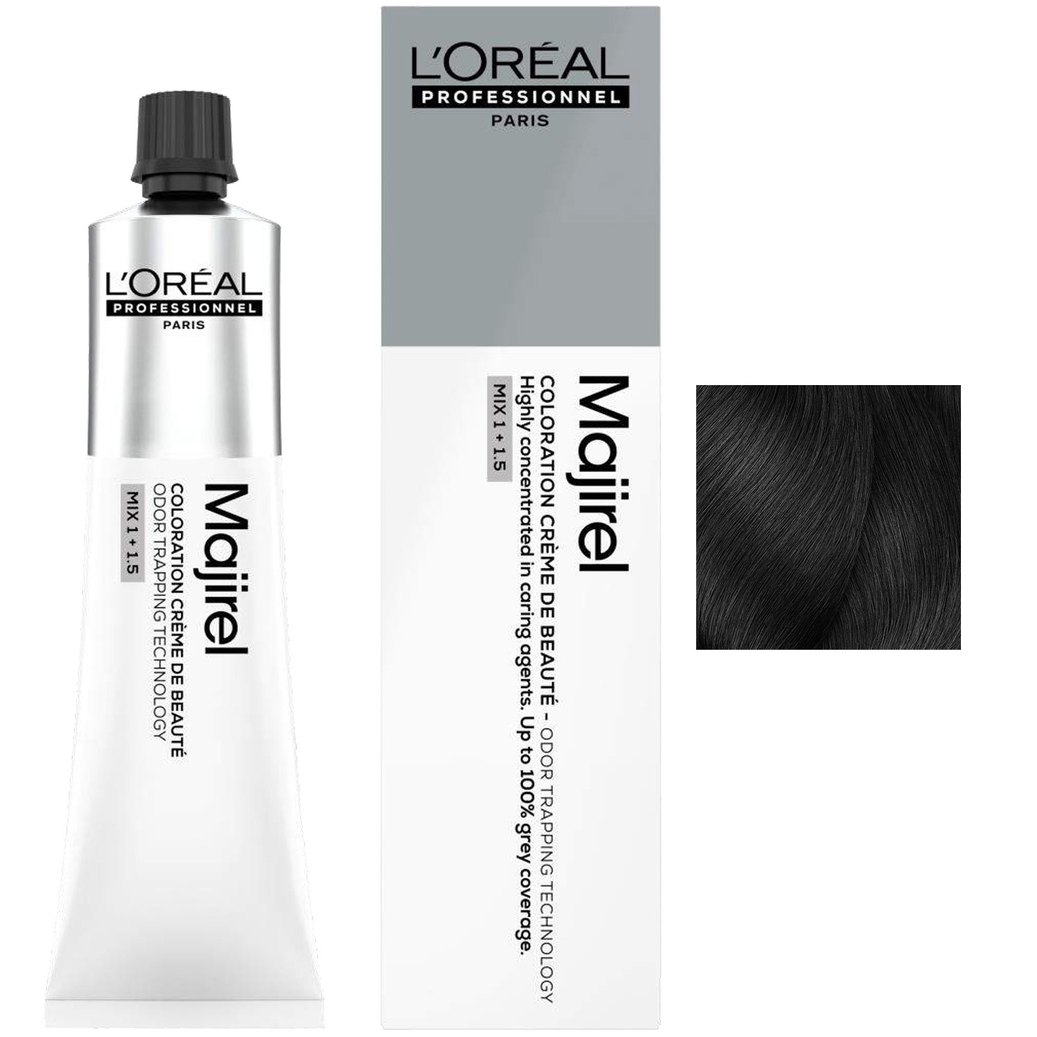 Для приготовления смеси используйте 1 тюбик красителя-крема Majirel 60 мл + 90 мл оксидент-крема с технологией улавливания запахов Odor Trapping Technology.