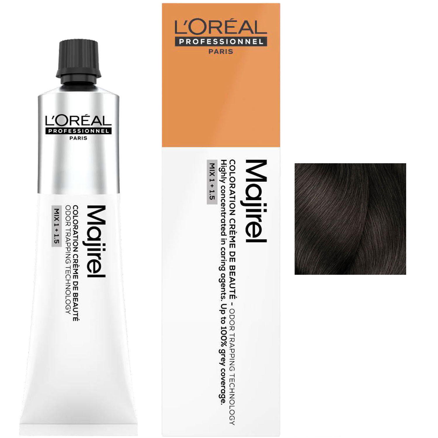 Для приготовления смеси используйте 1 тюбик красителя-крема Majirel 60 мл + 90 мл оксидент-крема с технологией улавливания запахов Odor Trapping Technology.