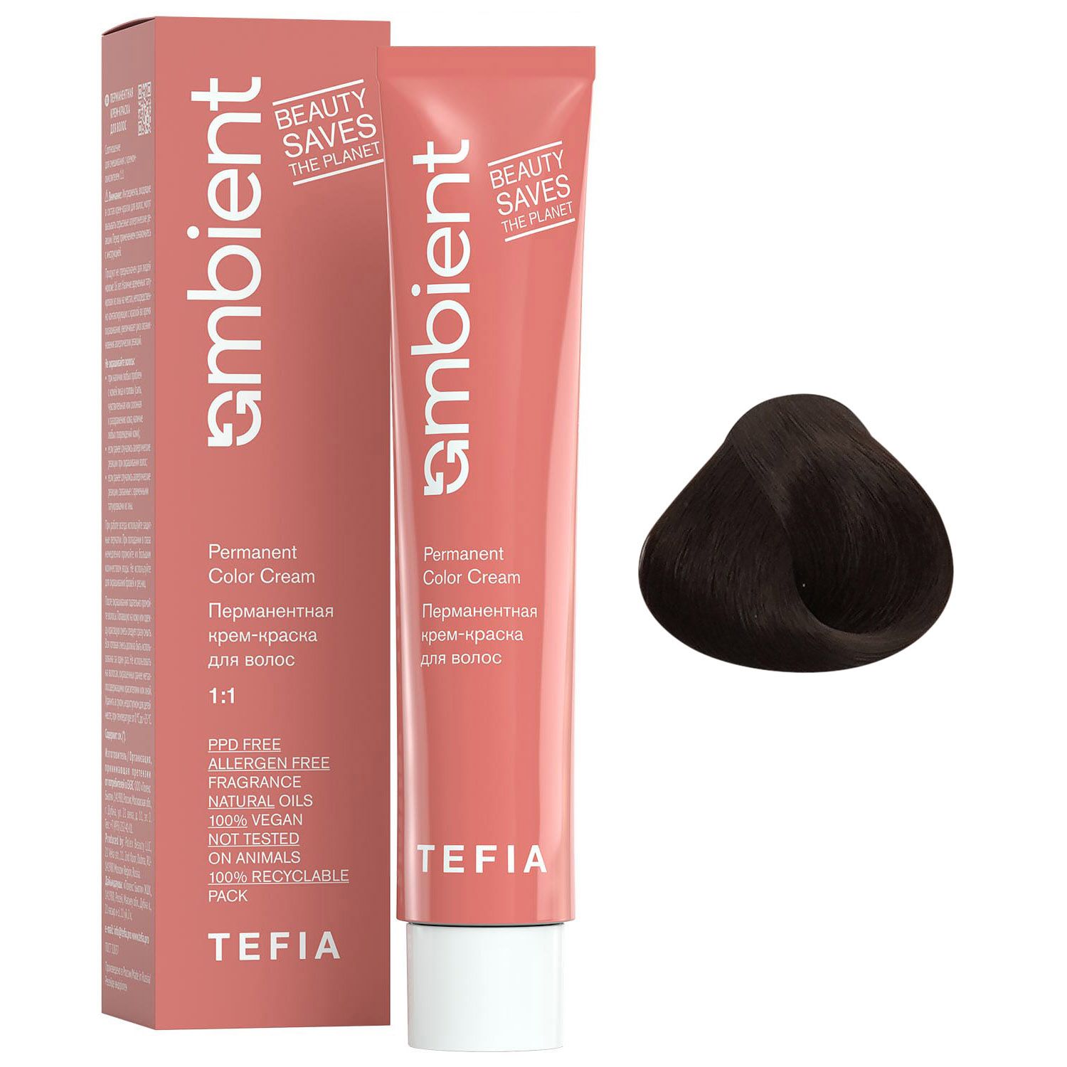 Перманентная крем-краска для волос Ambient, 4.8 Брюнет коричневый, 60 мл