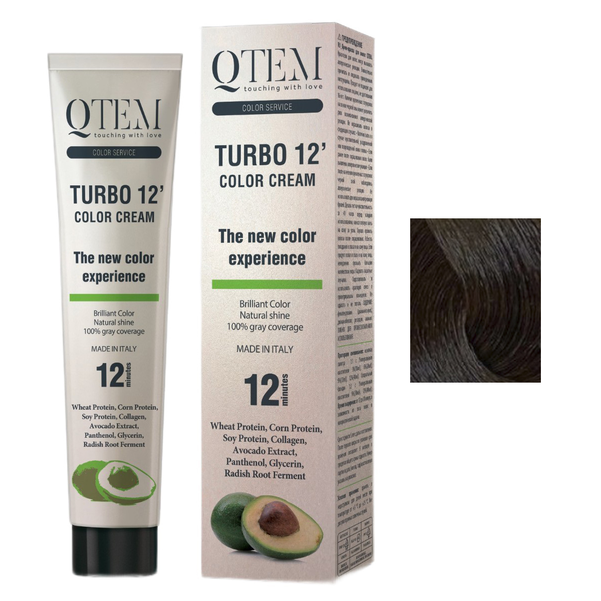 Перманентный краситель Turbo 12 Color Cream с восстанавливающими активами / 5.00 Интенсивный светлый шатен, 100 мл