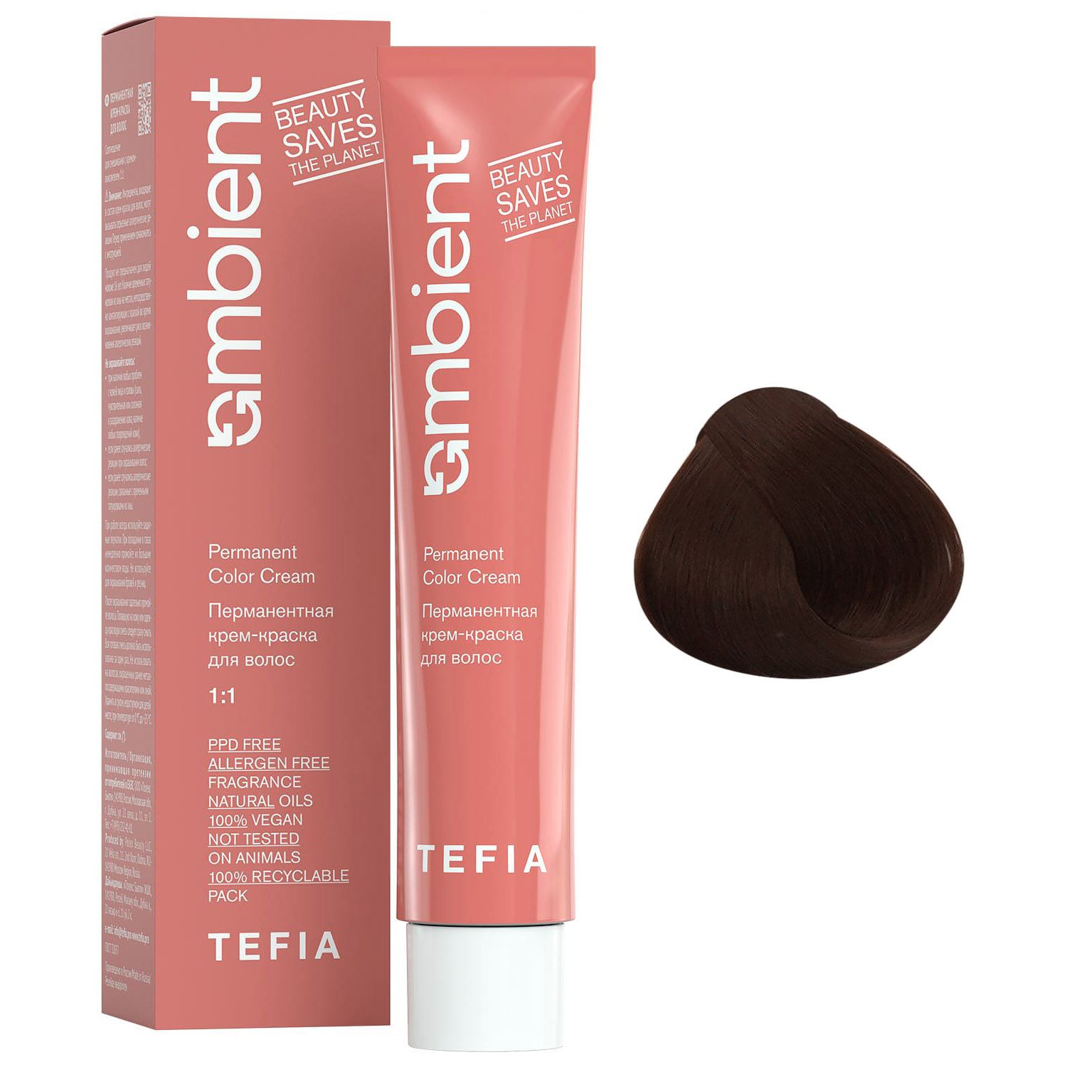 Перманентная крем-краска для волос Ambient, 6.41 Темный блондин медно-пепельный, 60 мл