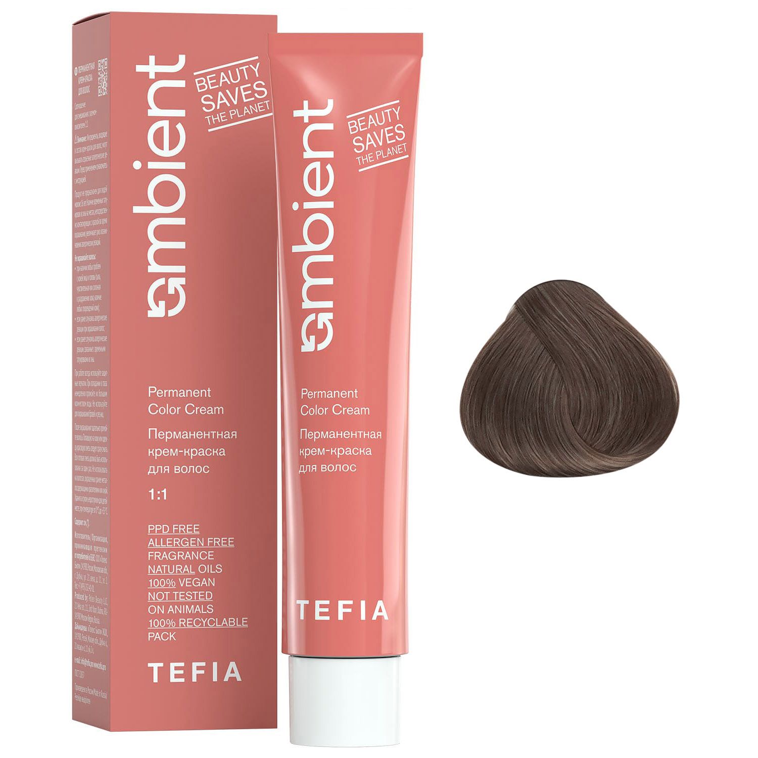 Перманентная крем-краска для волос Ambient, 7.01 Блондин натуральный пепельный, 60 мл