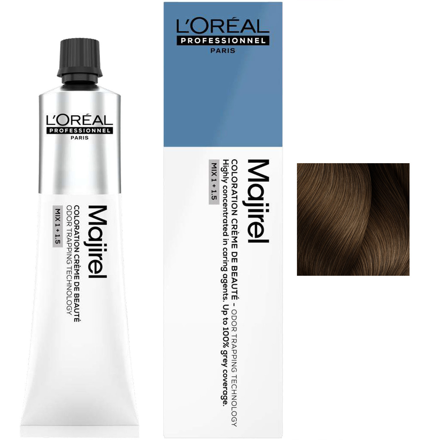 Для приготовления смеси используйте 1 тюбик красителя-крема Majirel 60 мл + 90 мл оксидент-крема с технологией улавливания запахов Odor Trapping Technology.