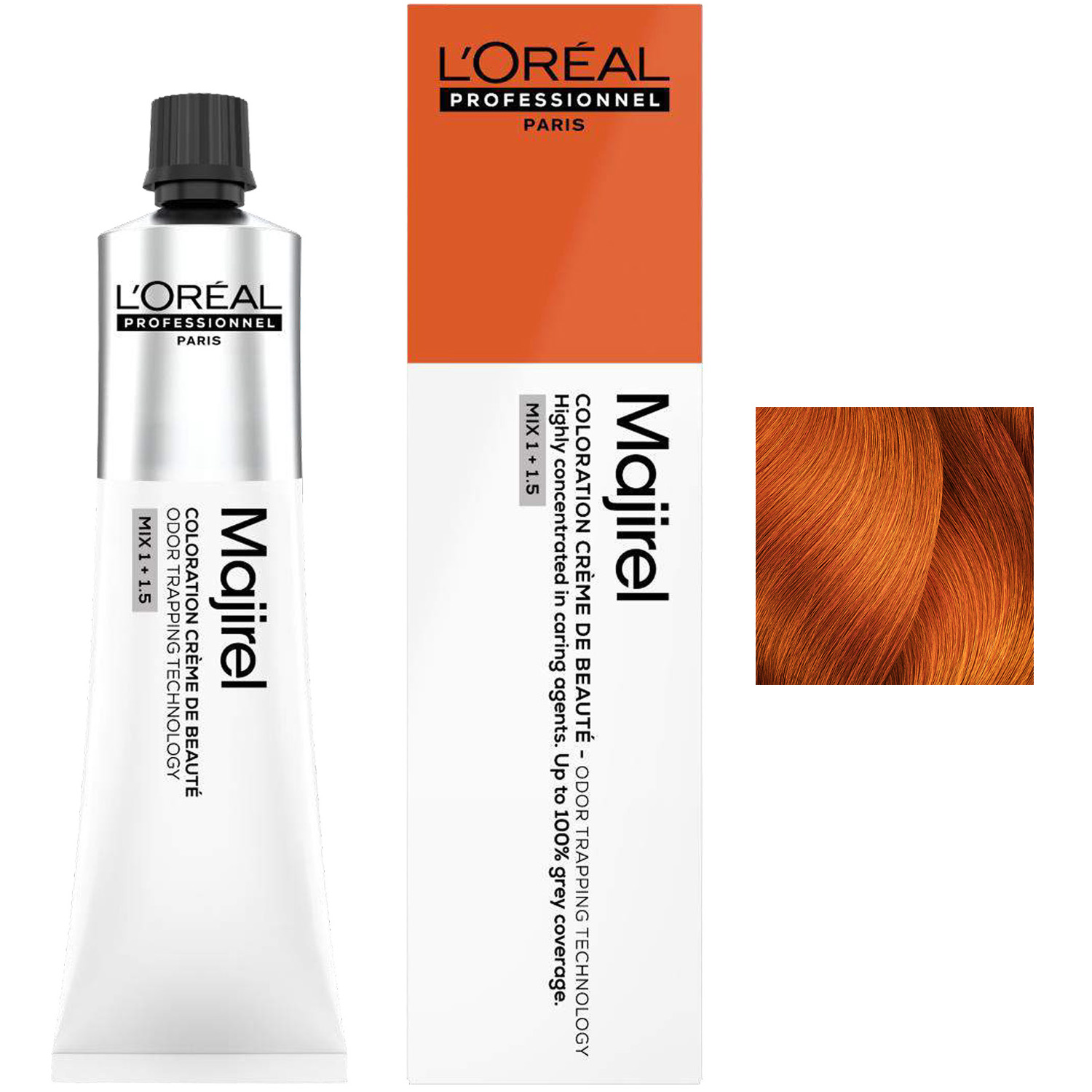 Для приготовления смеси используйте 1 тюбик красителя-крема Majirel 60 мл + 90 мл оксидент-крема с технологией улавливания запахов Odor Trapping Technology.
